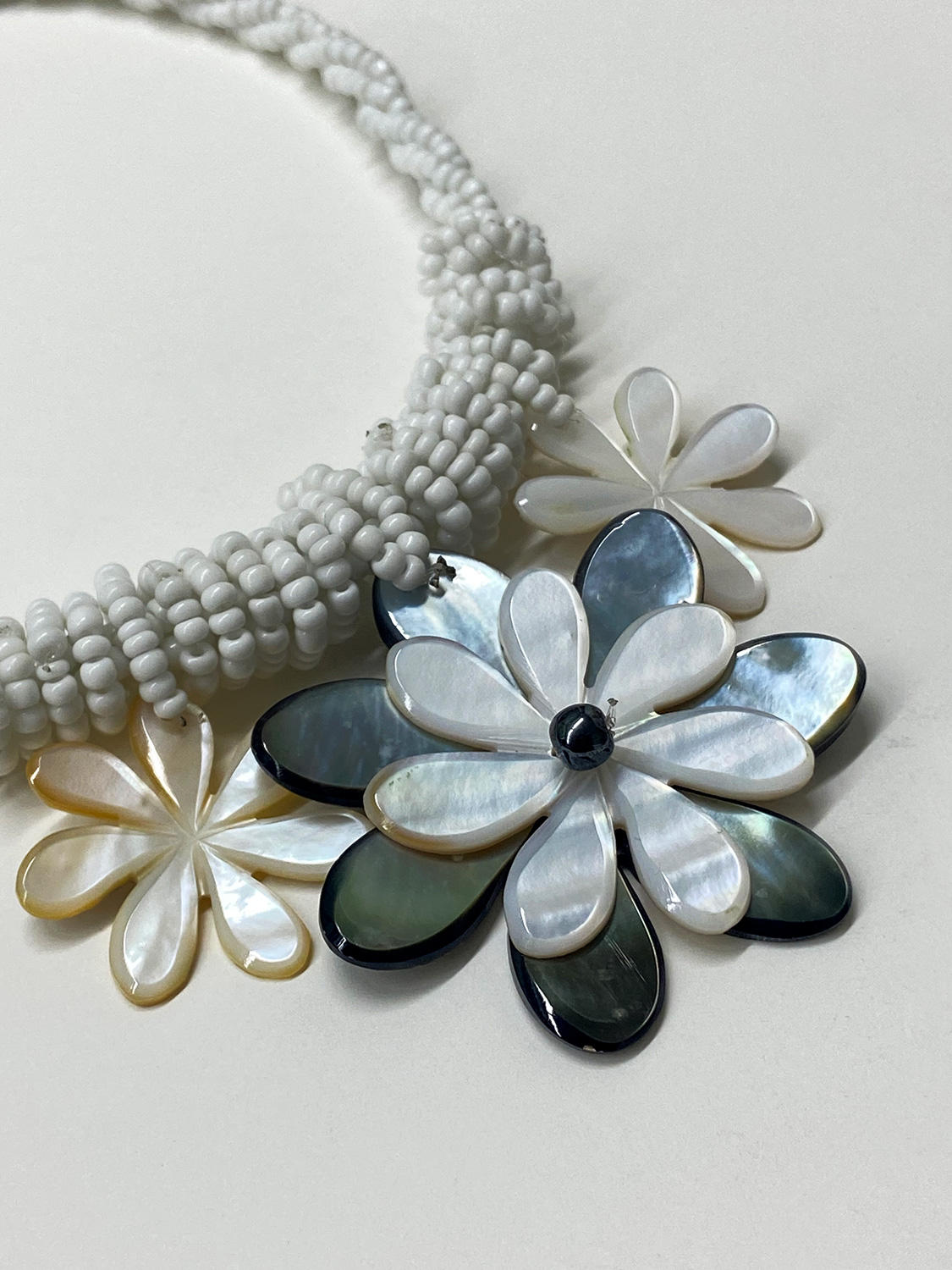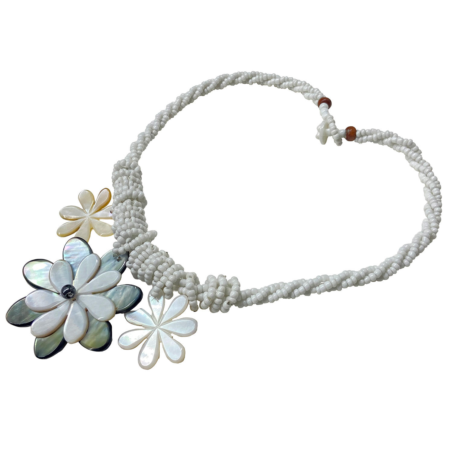 3連ハワイアンシェルネックレス トリプルティアレフラワー ホワイト