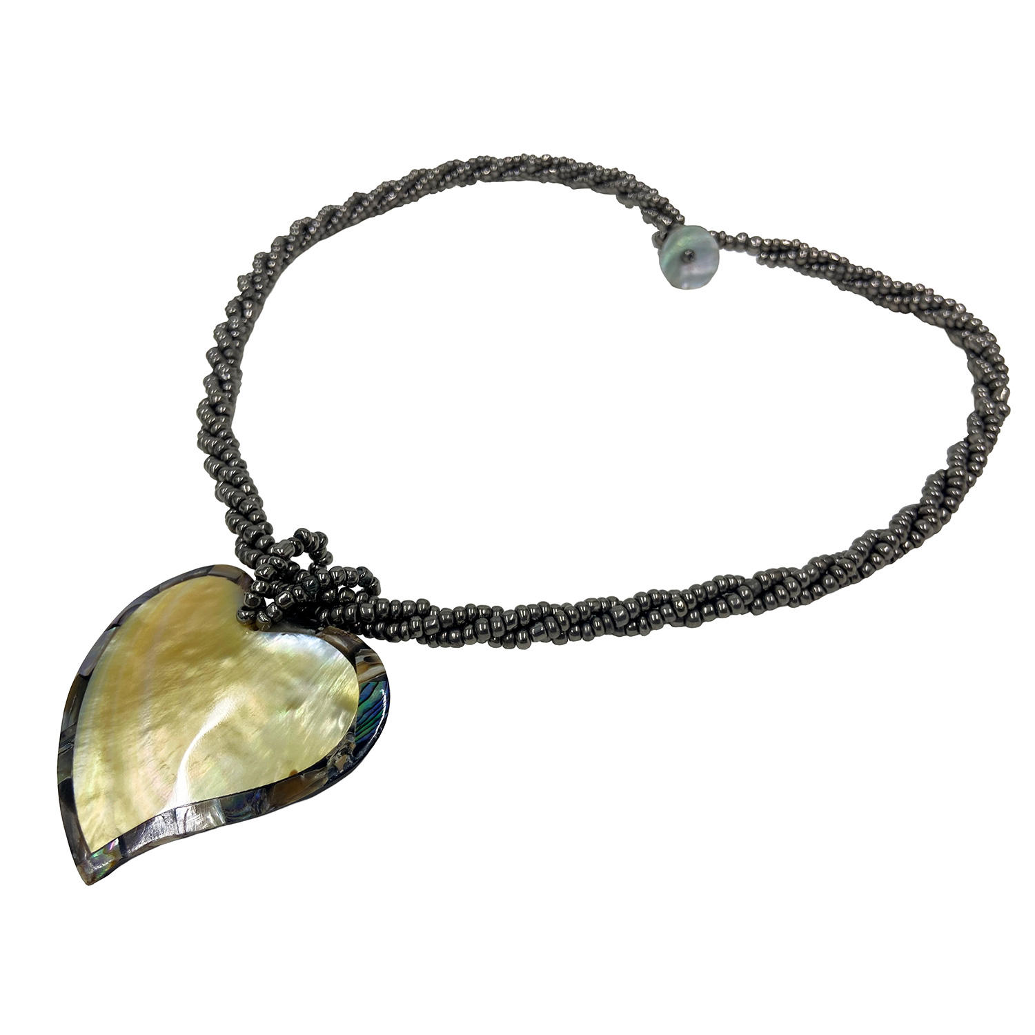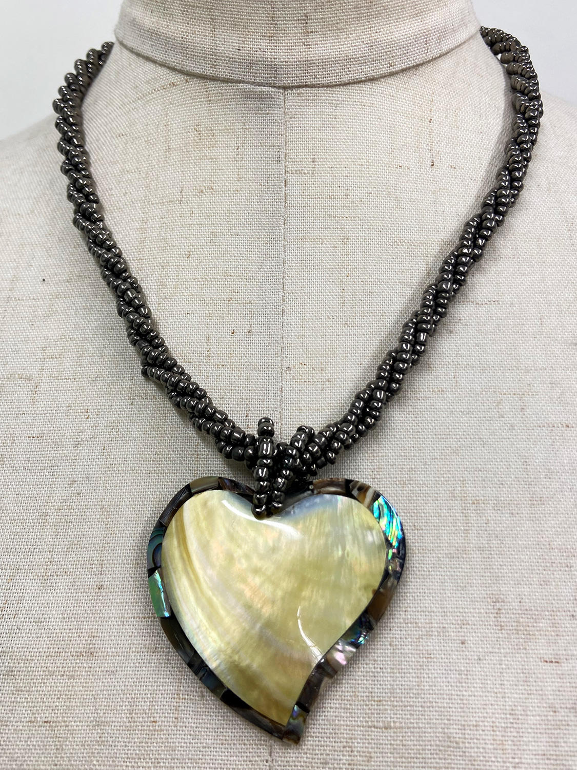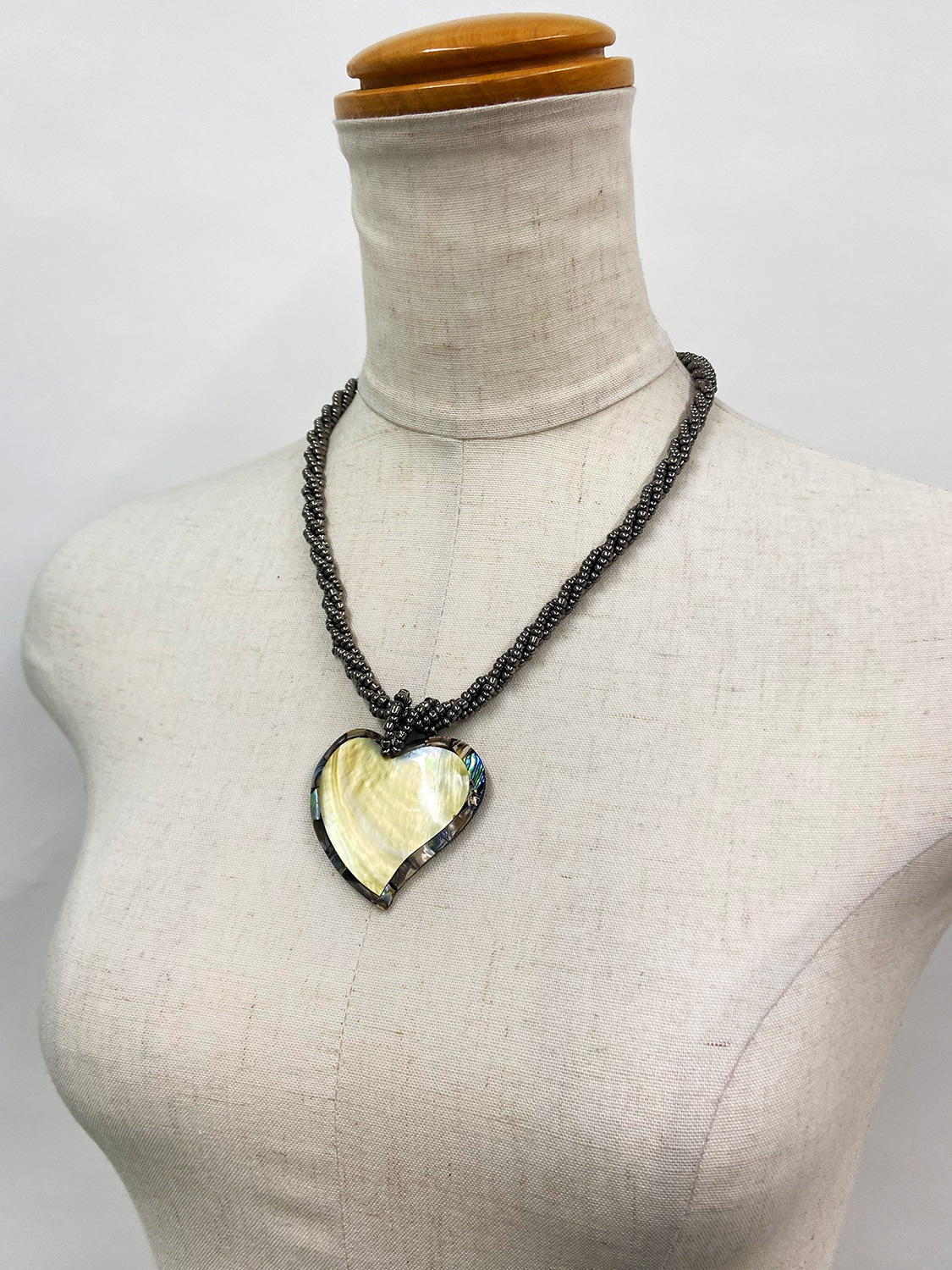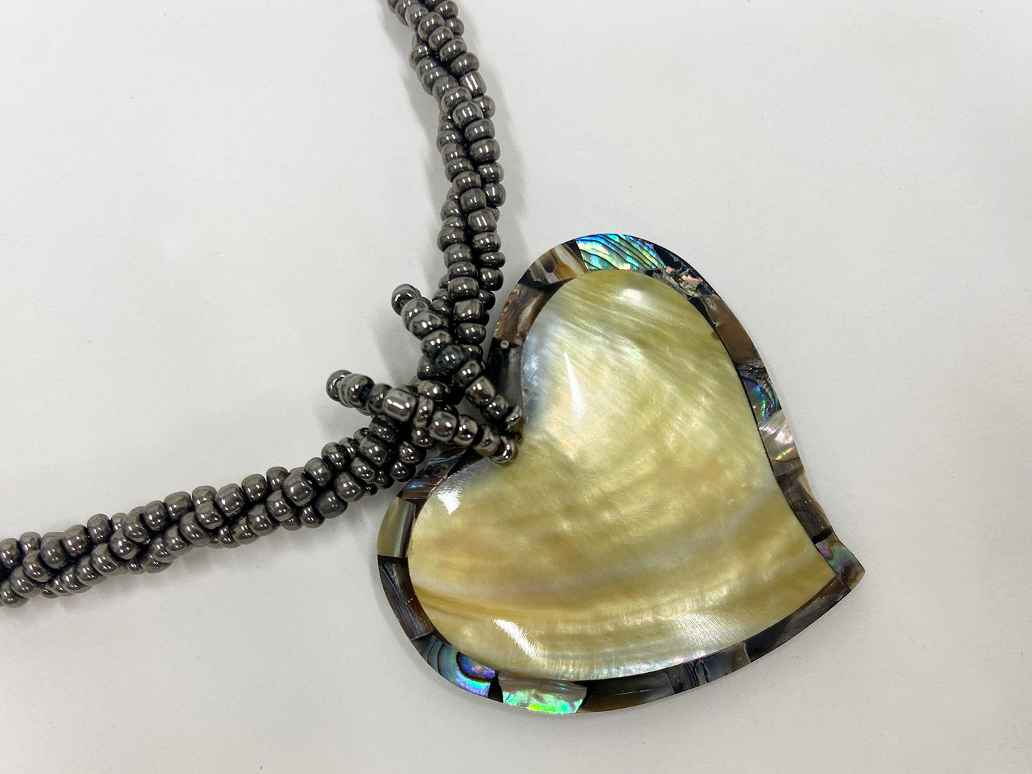 ハート型を重ね加工に象った重厚感あふれるシックなビーズネックレス