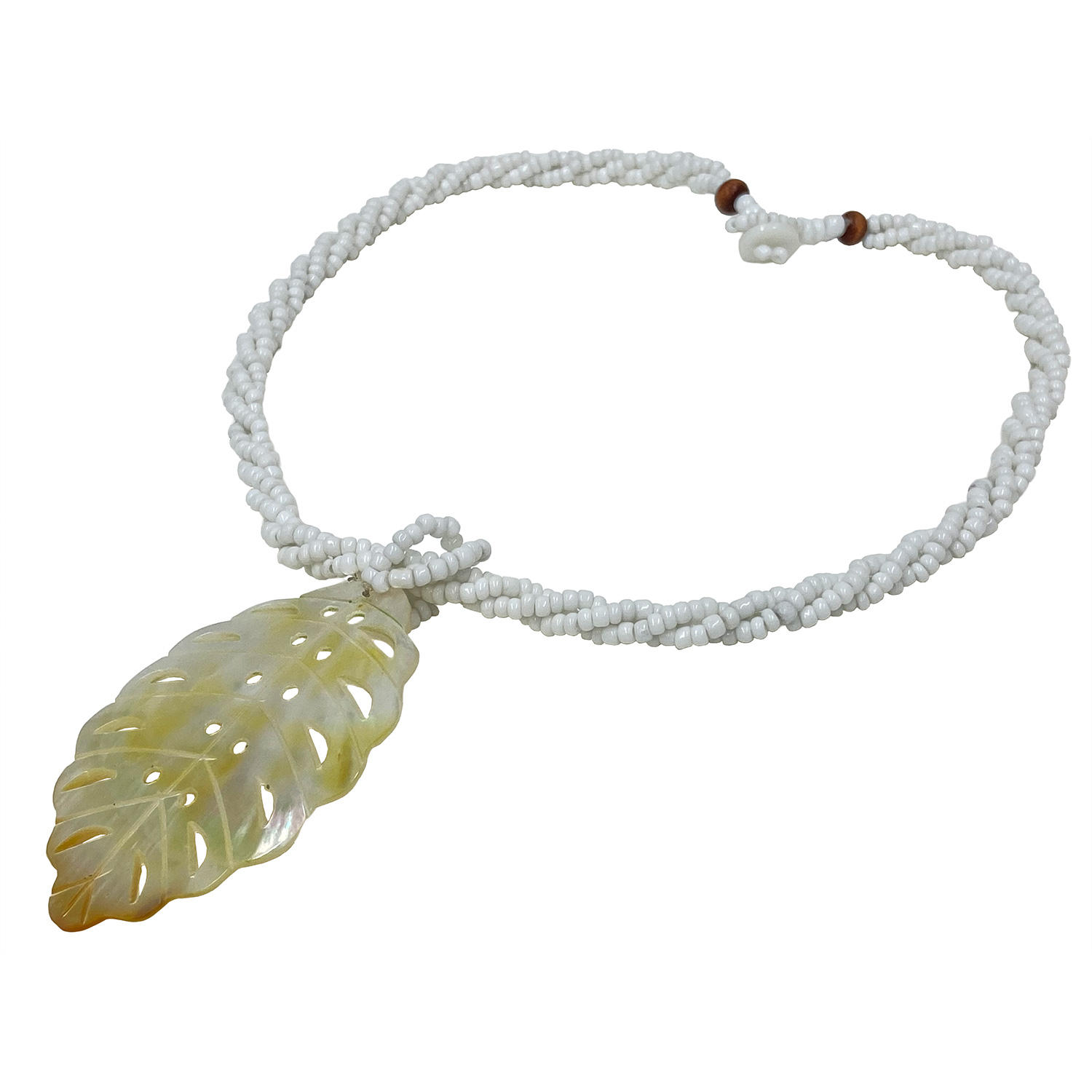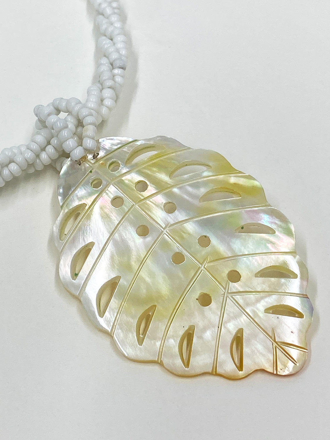 ピュアビーズネックレス モンステラスカルプ ホワイト