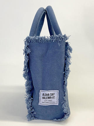 ハレイワから人気のフリンジトートが発売。ヴィンテージ感あふれるブルーのキャンバス生地が素敵なシンプルなおしゃれバッグ。