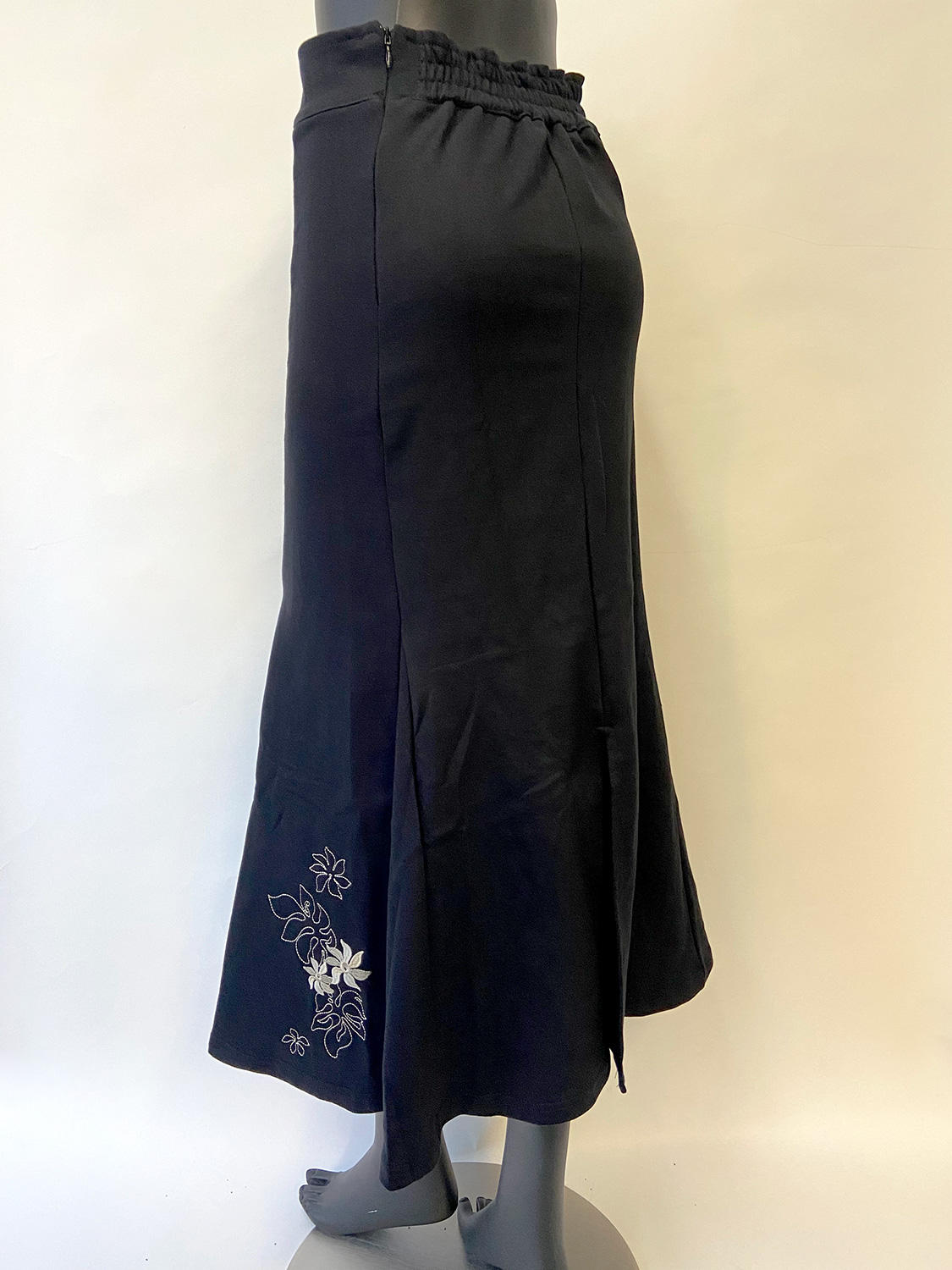 上品な刺繍が秀逸。ハワイアンでは稀少な裏毛マーメイドのフェミニンシルエット抜群なブラックスカートが完成。