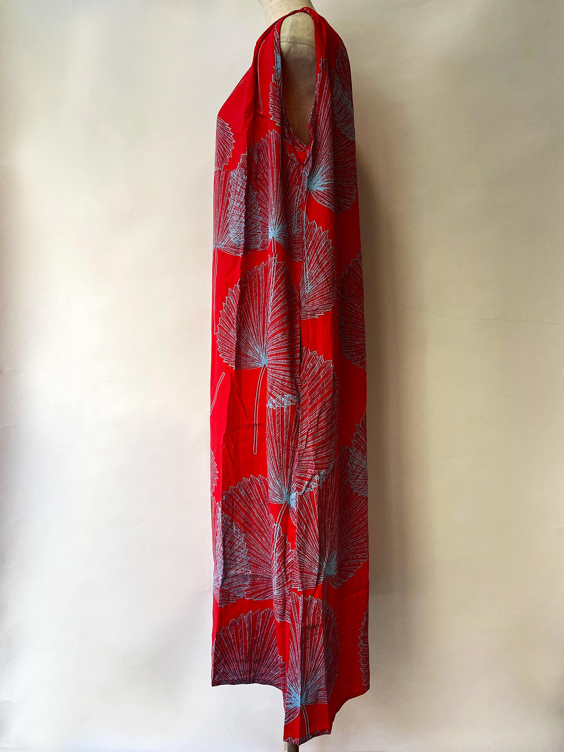 PUKANA フロントボタン ドレスワンピース パームリーフ レッド
