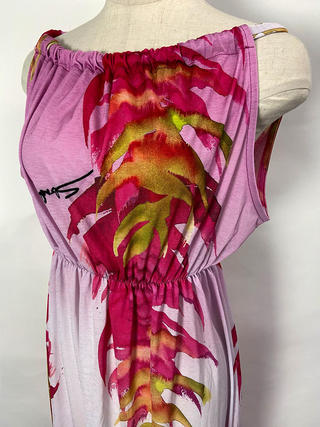 ピンクのグラデーションが芸術的なデザイン。マキシ丈ならではのたっぷりな丈感。