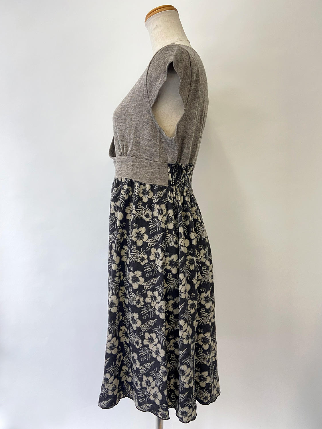 - PUKANA ウール調Vネックドレス フラワーチャコール