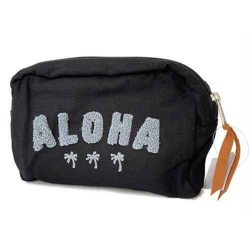 職人泣かせの技術、相良刺繍(サガラ刺繍)を駆使してシンボリックなALOHAのロゴと可愛いヤシの木をていねいに施した相良刺繍ポーチ ALOHA ブラックがPUKANAから登場。