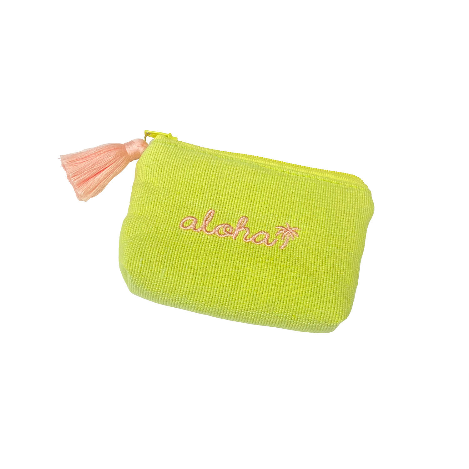 - alohaイカット生地ミニポーチ ライムイエロー