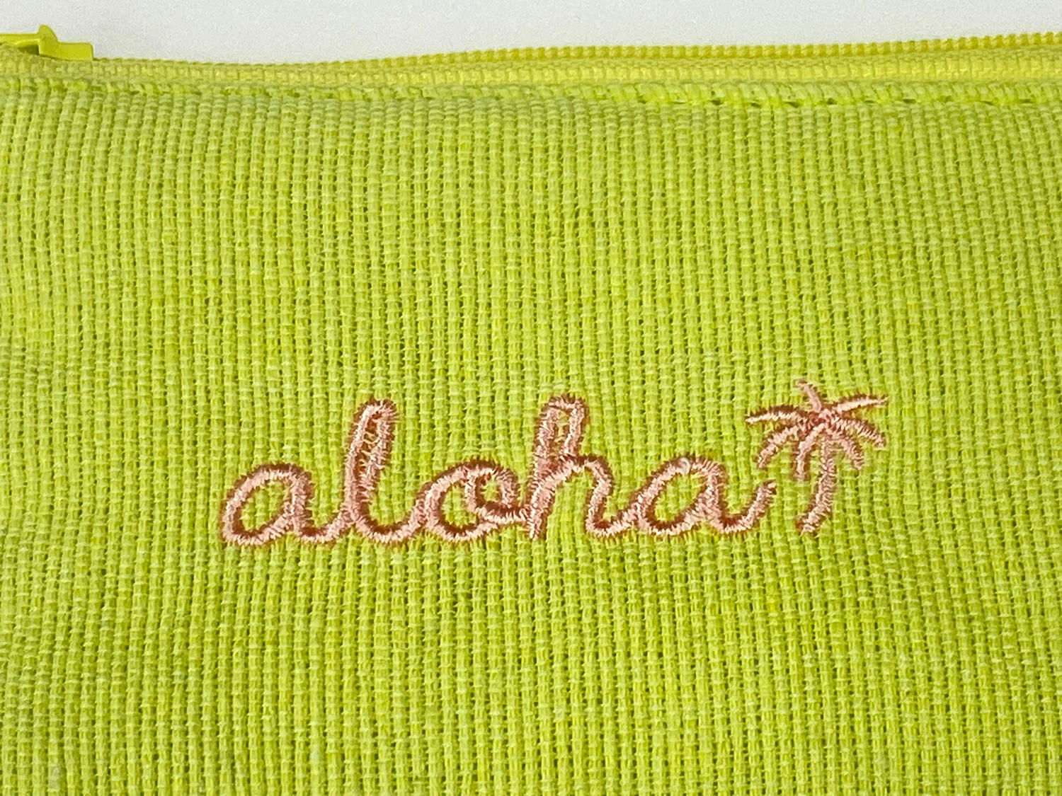 そして最後にデザインの要となる、alohaの筆記体ロゴとワンポイントのヤシの木モチーフの刺繍仕上げ。
