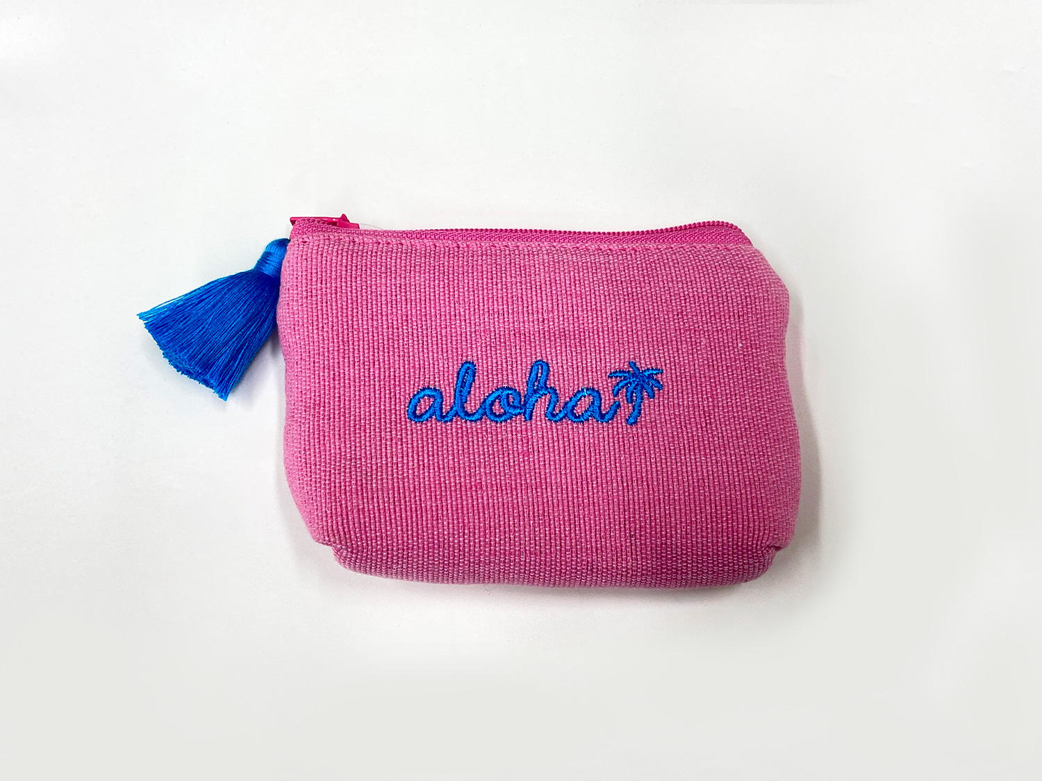かわいいサイズ感のミニポーチ!このalohaイカット生地ポーチのデザイン、南国好きにはたまらない現地感あふれる雰囲気ですねー♪ピンクとライトブルーの発色の良い組み合わせはほんと絶妙な可愛さですよね!
