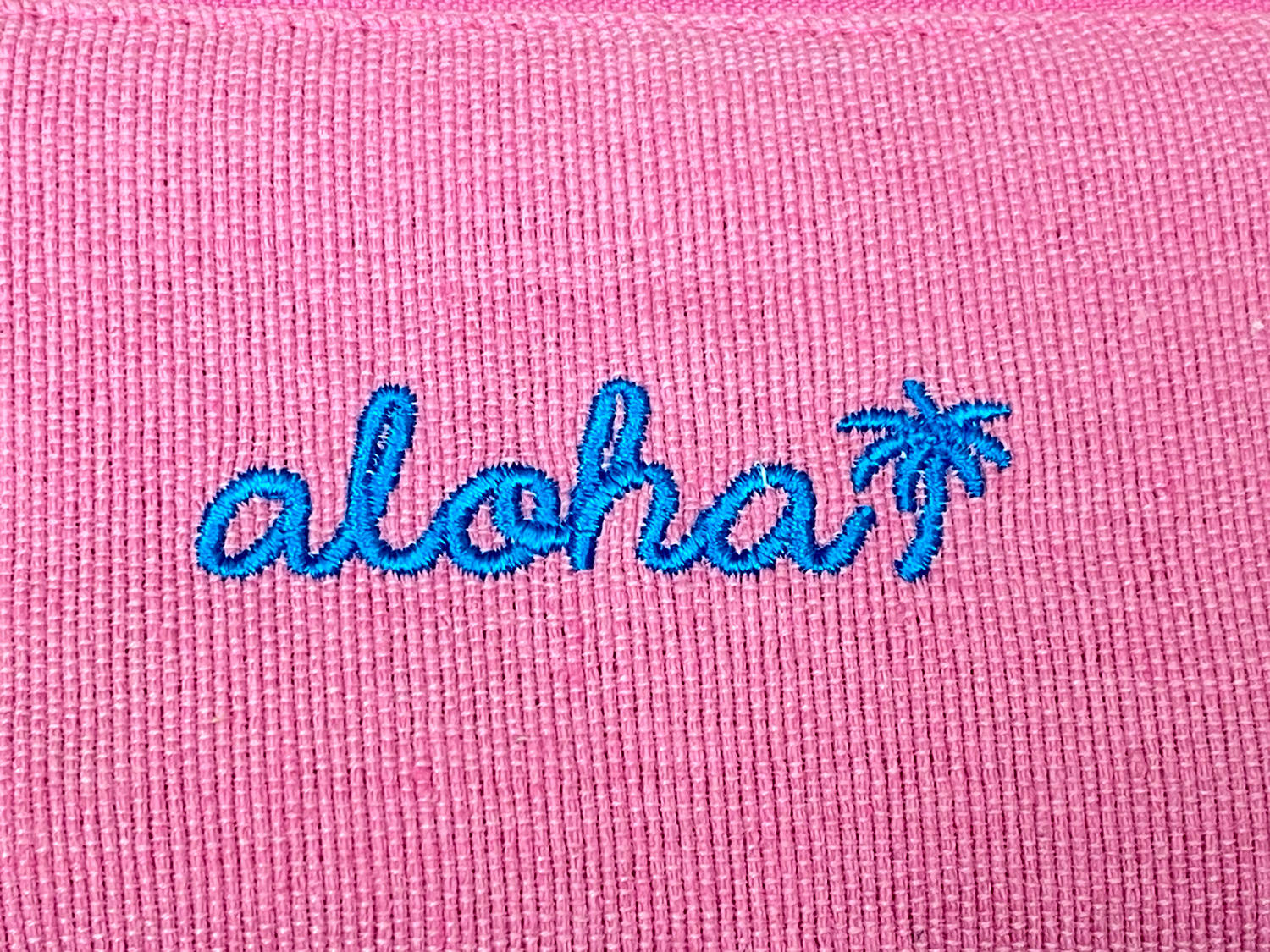 そして最後にデザインの要となる、alohaの筆記体ロゴとワンポイントのヤシの木モチーフの刺繍仕上げ。