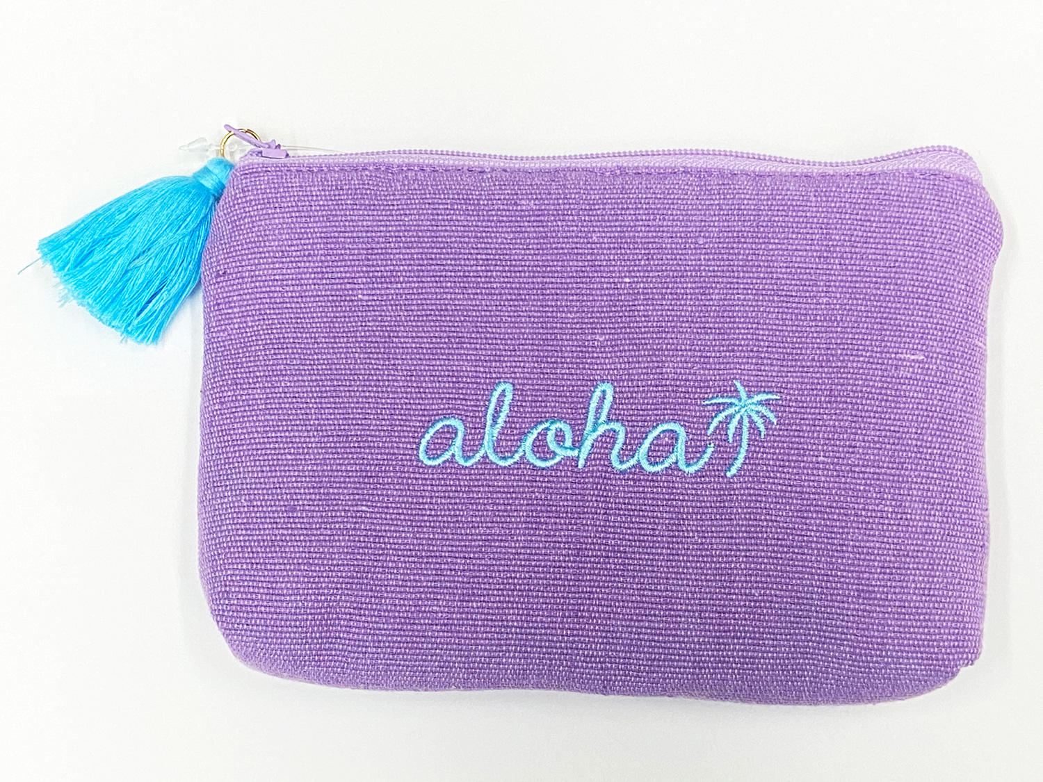 このalohaイカット生地ポーチのデザイン、南国好きにはたまらない現地感あふれる雰囲気ですねー♪パープルとライトブルーの組み合わせはほんと絶妙な可愛さですよね!