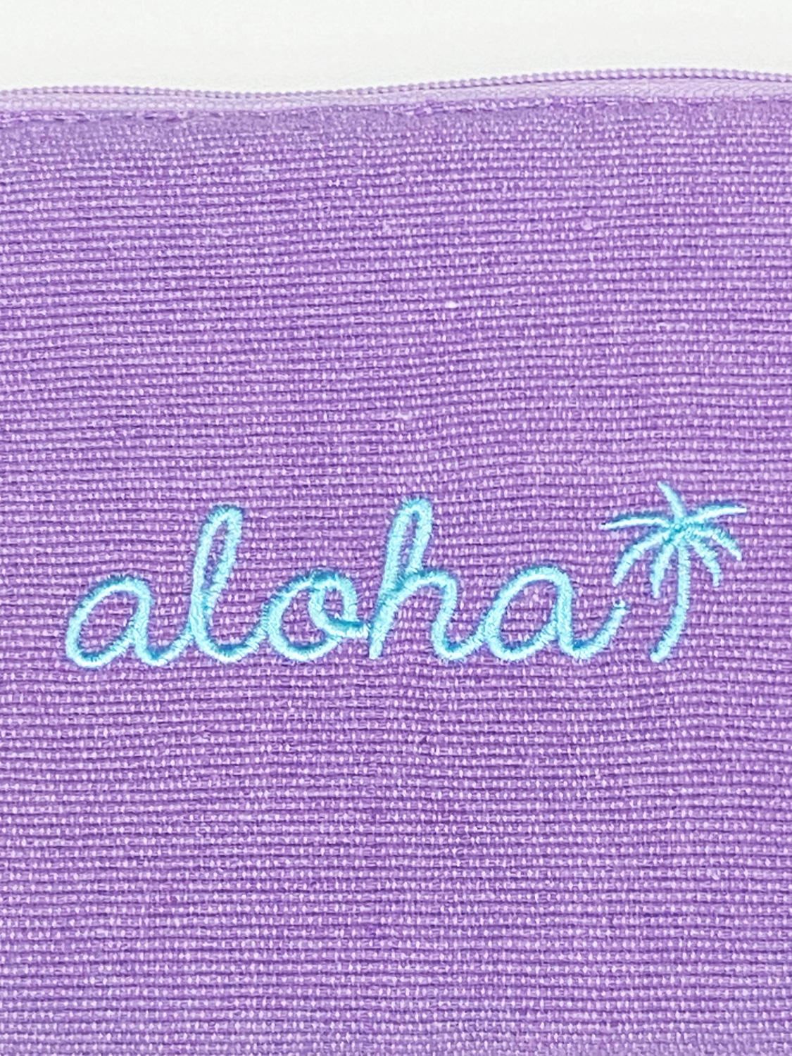 そして最後にデザインの要となる、alohaの筆記体ロゴとワンポイントのヤシの木モチーフの刺繍仕上げ。