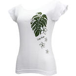 モノトーンハワイアン調が人気のティアレタパ柄が素敵な新作Tシャツです。