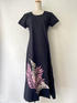 ごらんくださいこのフォルム。とにかくラクチンなコットン100%のブラック生地に可憐なラウアエリーフをスカート部分にプリントしたハワイ好きさんに大人気のPUKANA製ロングワンピースです♪ |