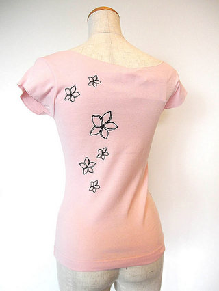 フラスタイル カットオフストレッチTシャツ モンステラ&プルメリア ピンクブラウン