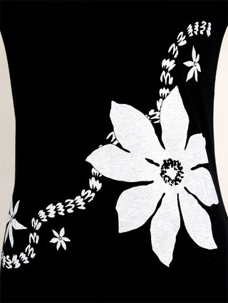 PUKANA ノースリーブストレッチTシャツ ラメプリント プルメリアブラック ML&XL