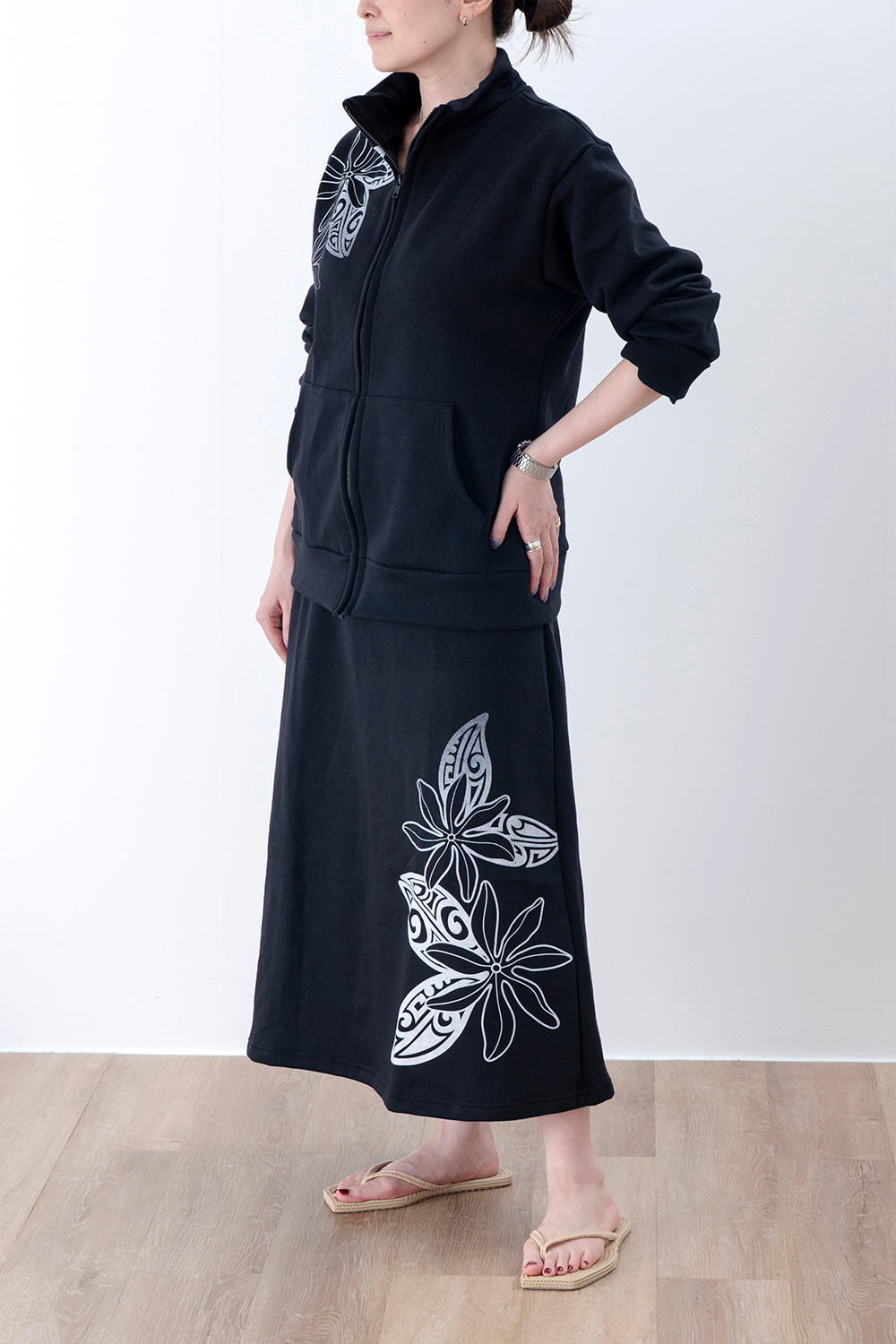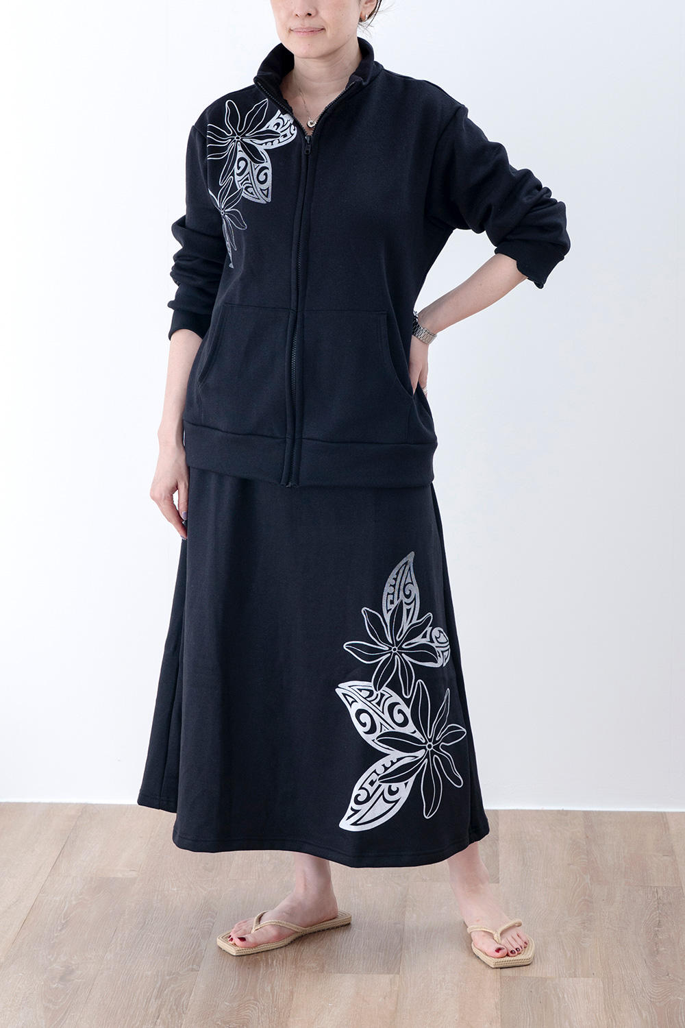 こちらはワタクシ上下セットアップ、色違いでお買い上げさせていただきました!動きやすいフォルムで着脱ラクチンなので部屋着や普段着にはもちろん、レッスン時の羽織ものとしてスタッフ感でも大人気!