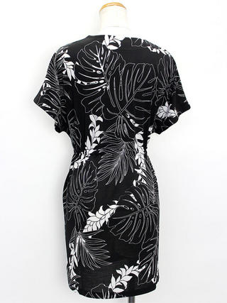 Pono Leia ハワイアン ウエスト絞りチュニック モンステラ ブラックホワイト